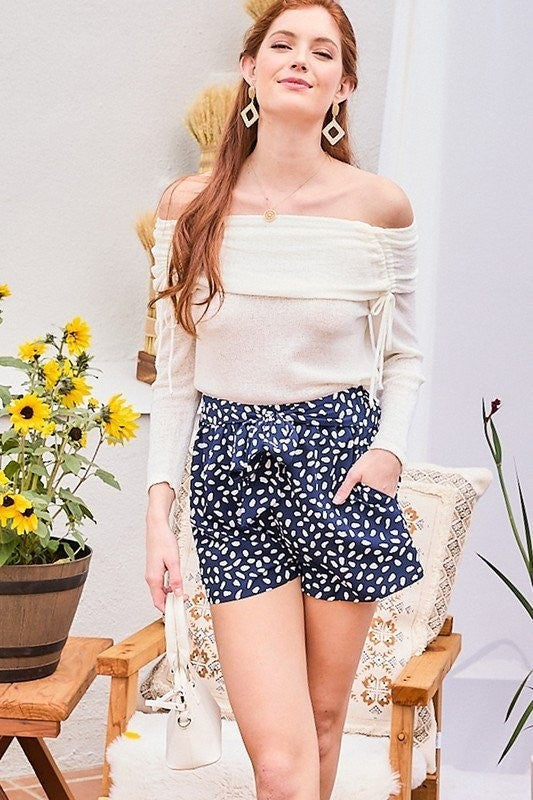 Waist Elastic Band Tie Side Pocket Leopard Shorts